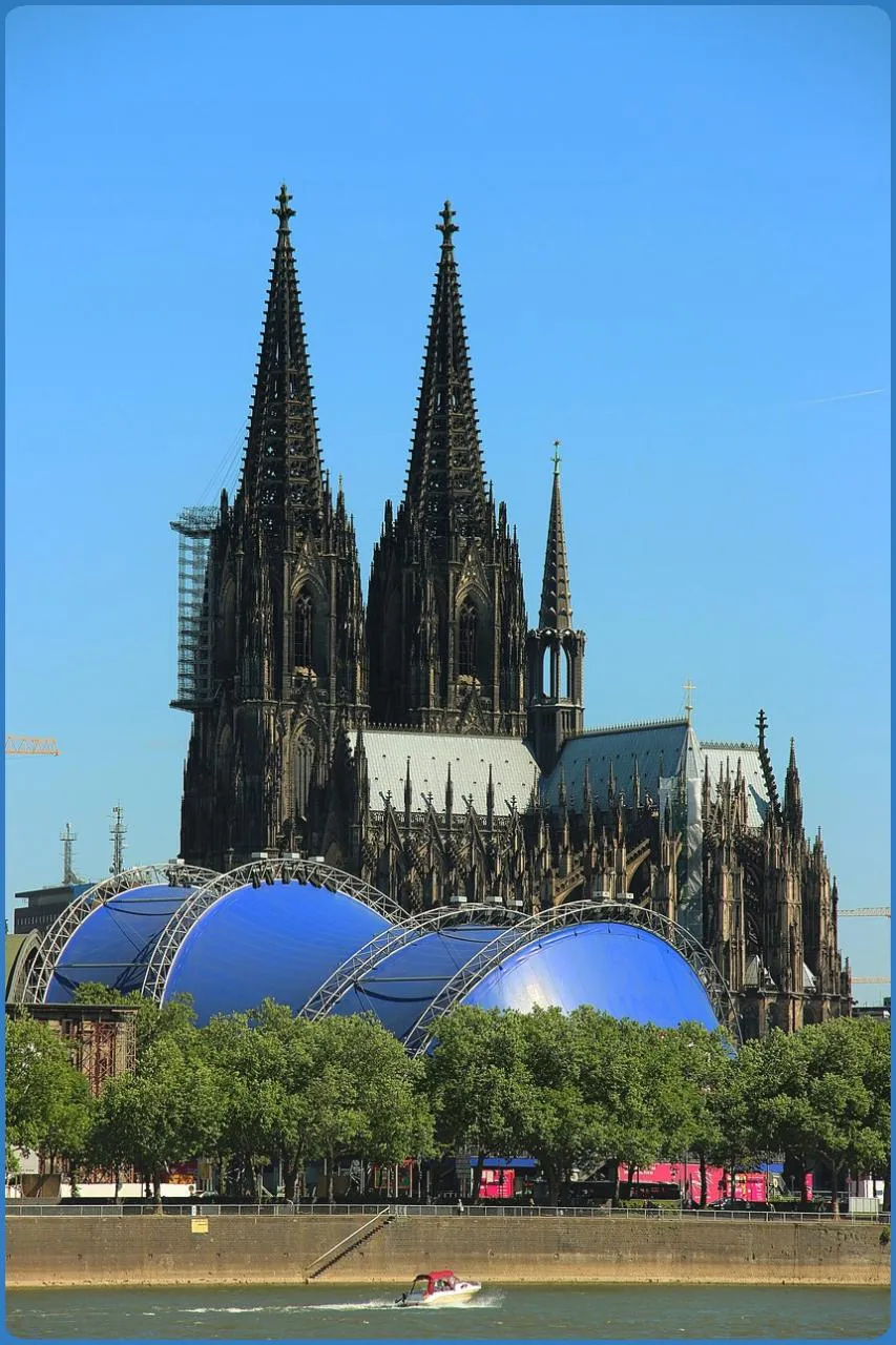 Der Dom beherbergt Kunstwerke, die weltweit einzigartig sind. Vor allem wird dort der Dreikönigsschrein aufbewahrt, für den der Dom erbaut wurde. Das mittelalterliche Chorgestühl hat 104 Plätze. Nachts kann man die Kölner Lichter sehen, die ihn aus der Ferne sichtbar machen. Er ist das bekannteste Gebäude in Deutschland. Seit 1996 ist er ein UNESCO-Welterbe. Seine Höhe beträgt 157 Meter. Im Jahr 1880 wurde er fertiggestellt. Während des Zweiten Weltkriegs wurde er schwer beschädigt. Der Bau des Doms dauerte 6 Jahrhunderte. Es ist das höchste architektonische Meisterwerk. Es stand unter dem Schutz des Apostels Petrus.