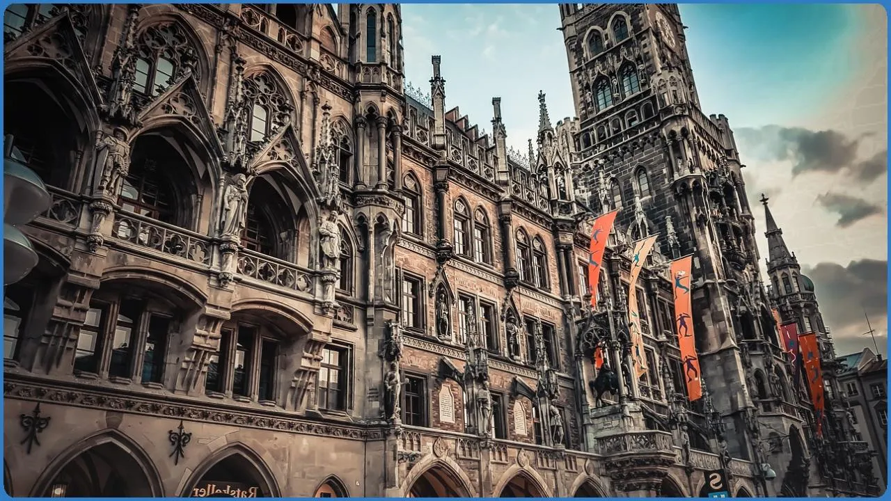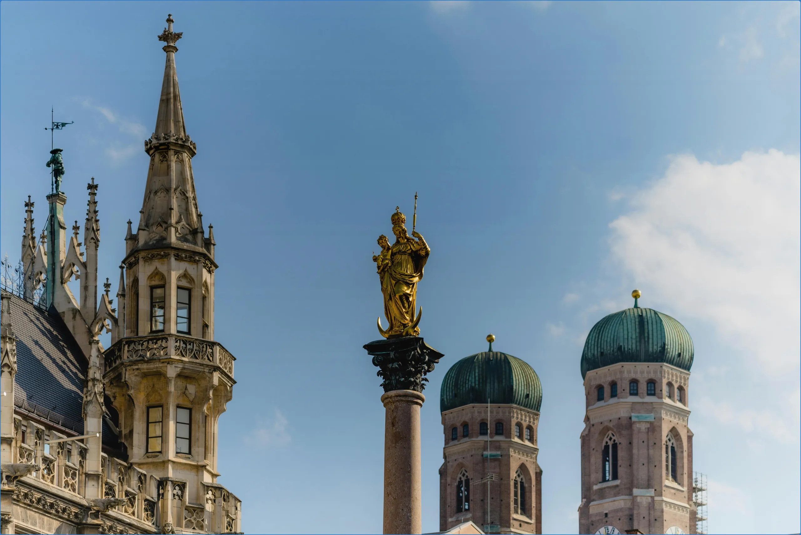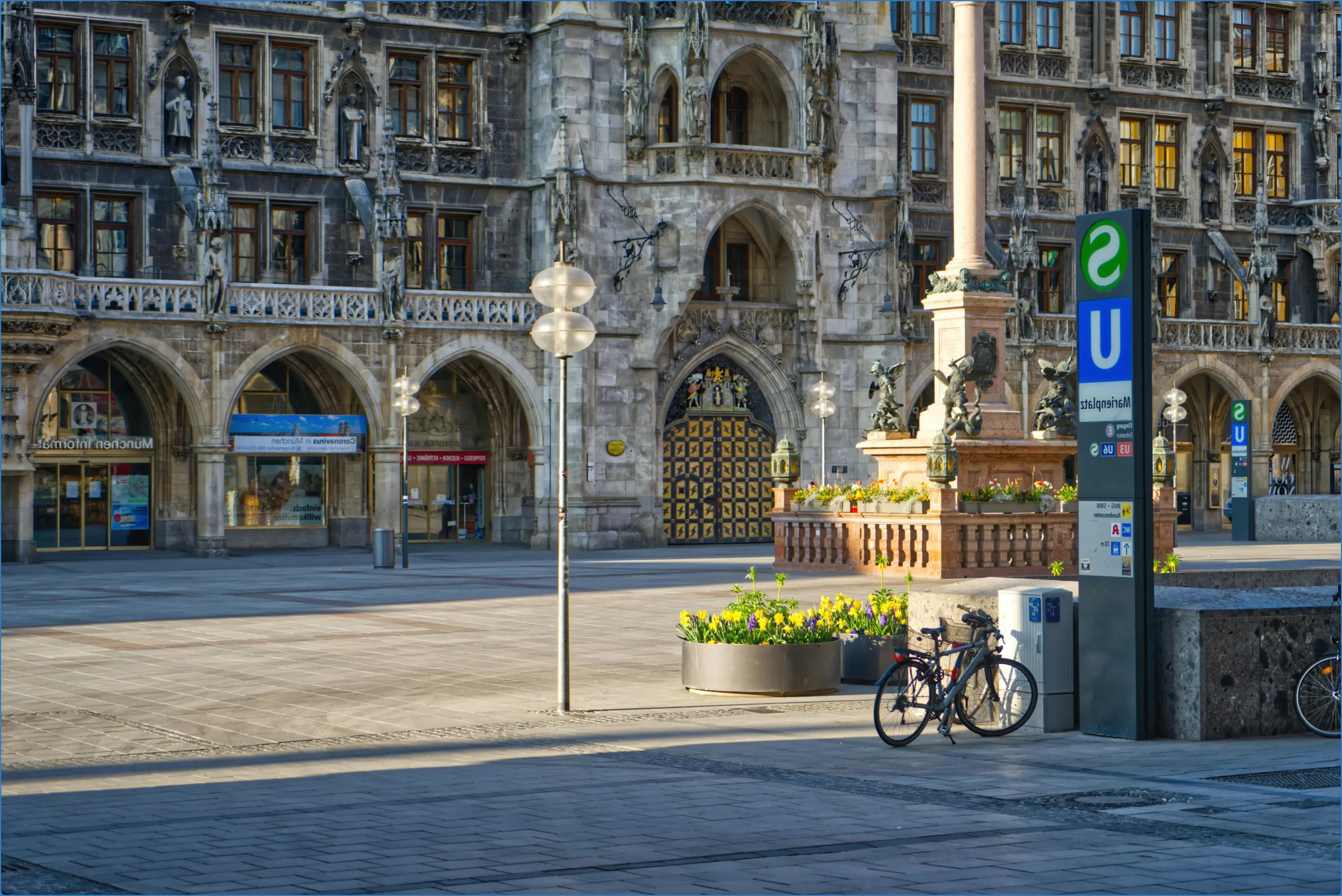 Wenn wir also zum Marienplatz zurückkehren, wird es interessant sein zu wissen, dass sich auf diesem Platz Einkaufszentren und -viertel befinden, wie das Nationaltheater, die Maximilianstraße, das Residenztheater, das Münchner Kammerspiel, das Hofbräuhaus und die Frauenkirche. Und der unvergleichliche Christkindlmarkt ist zweifellos eine der beliebtesten Veranstaltungen auf dem Marienplatz. Die meisten Bürgerinnen und Bürger treffen sich am Fischbrunnen, der sich vor dem Haupteingang des Neuen Rathauses befindet. Gleichzeitig ist die beliebteste Attraktion der Stadt das Glockenspiel auf dem Turm des Neuen Rathauses, das 43 Glocken hat. Ebenso können Touristen den Lesesaal der juristischen Bibliothek und den Rathausbalkon am Marienplatz besichtigen. Dieser Rathausbalkon ist weltberühmt für die Meisterschaftsfeiern des Fußballvereins Bayern München. Die ganze Stadt und den Marienplatz kann man vom Turm des Neuen Rathauses oder vom Alten Peter aus sehen. "Der Alte Peter" ist auch eine der interessantesten Sehenswürdigkeiten in München. Außerdem verfügt der Alte Peter über mehr als 300 Stufen.