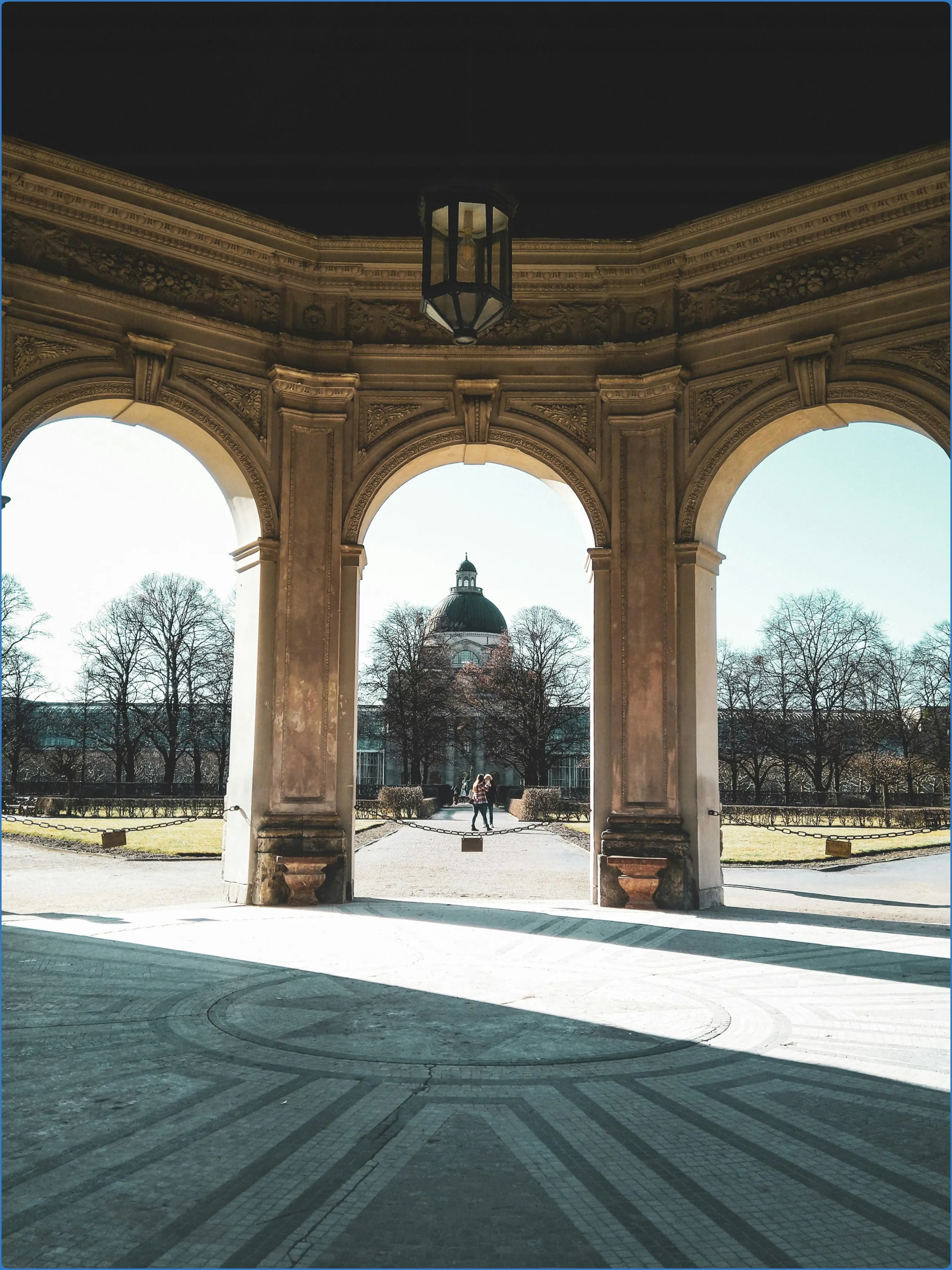 Im Jahr 1838 wurde die Bank von Leo von Klenze entworfen. Diese Bank wurde aus Kelheimer Kalkstein gefertigt und hat eine halbrunde Form. Der runde Tempel namens Monopteros wurde 1831 erbaut. Er wurde im klassischen griechischen Stil erbaut und war etwa 16 Meter hoch. Der erhöhte Hügel wurde von Carl August Skell entworfen.