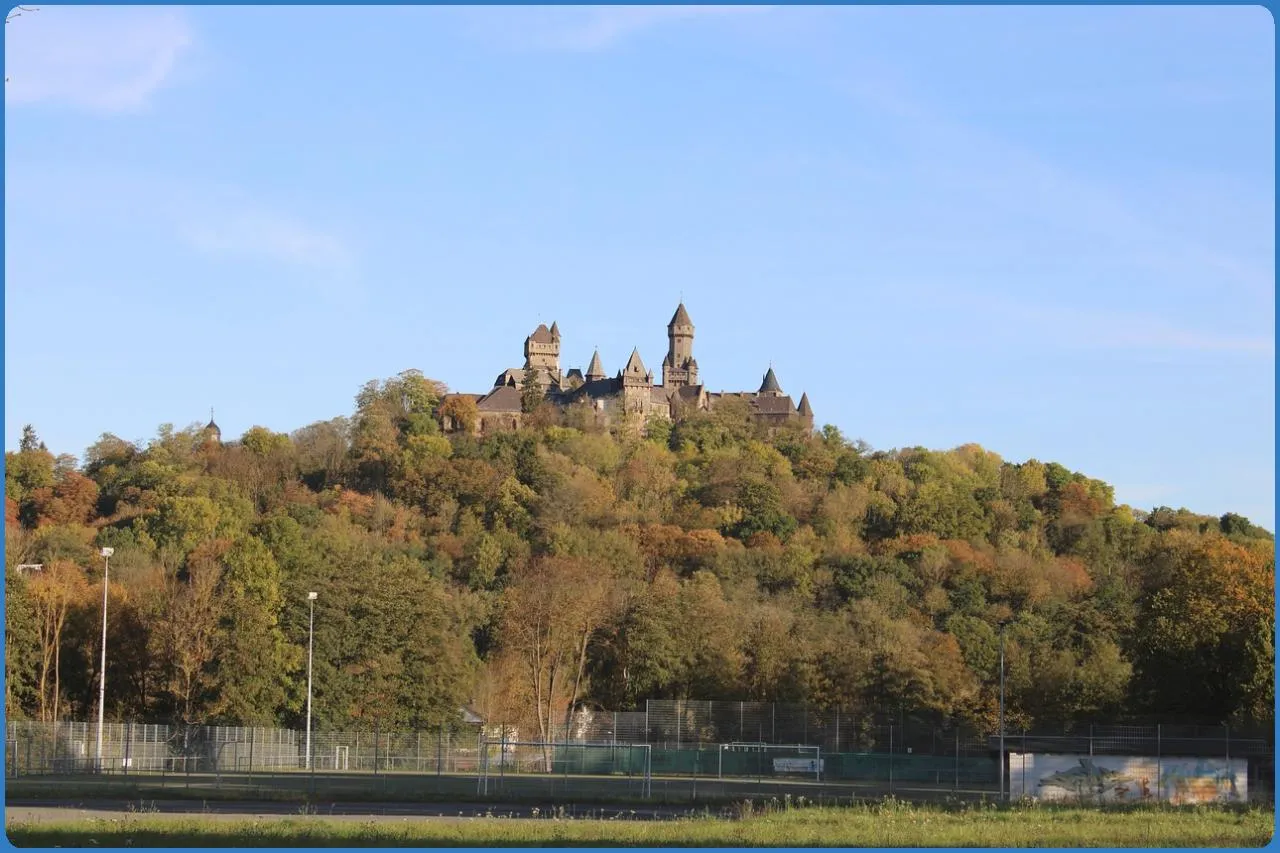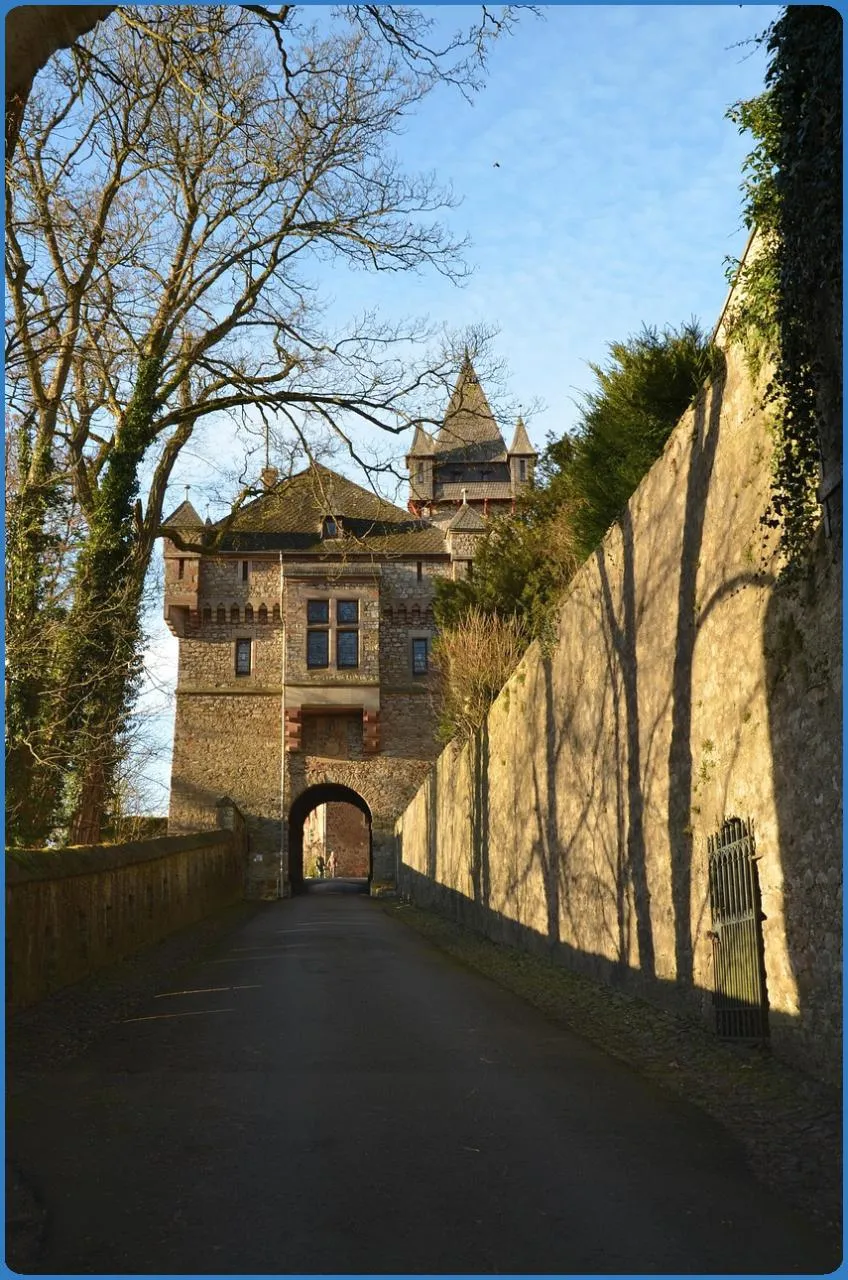 Die Kernburg mit Grenzwartturm, Palas und Schildmauer und Bergfried. Diese Kernburg war aus dem 13. Jahrhundert. Die romanischen Stilelemente sind trotz der späteren Veränderungen noch gut auszumachen;
