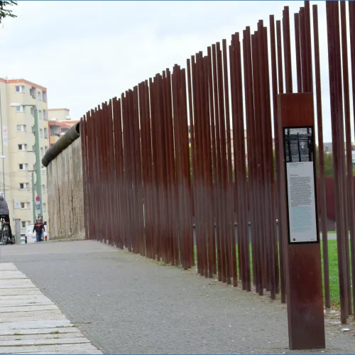 Denkmal Berliner Mauer. Dieses Denkmal befindet sich im Zentrum von Berlin. Es erinnert uns an die Teilung Deutschlands. Man kann es in der Bernauer Straße sehen. Seine Länge beträgt 1,4 km entlang des Grenzstreifens.Heutzutage ist nur noch ein Teil dieser Mauer übrig geblieben.Es begann im Jahr 1961. Die Grenze wurde vollständig abgeriegelt. Die Menschen wurden plötzlich daran gehindert,…