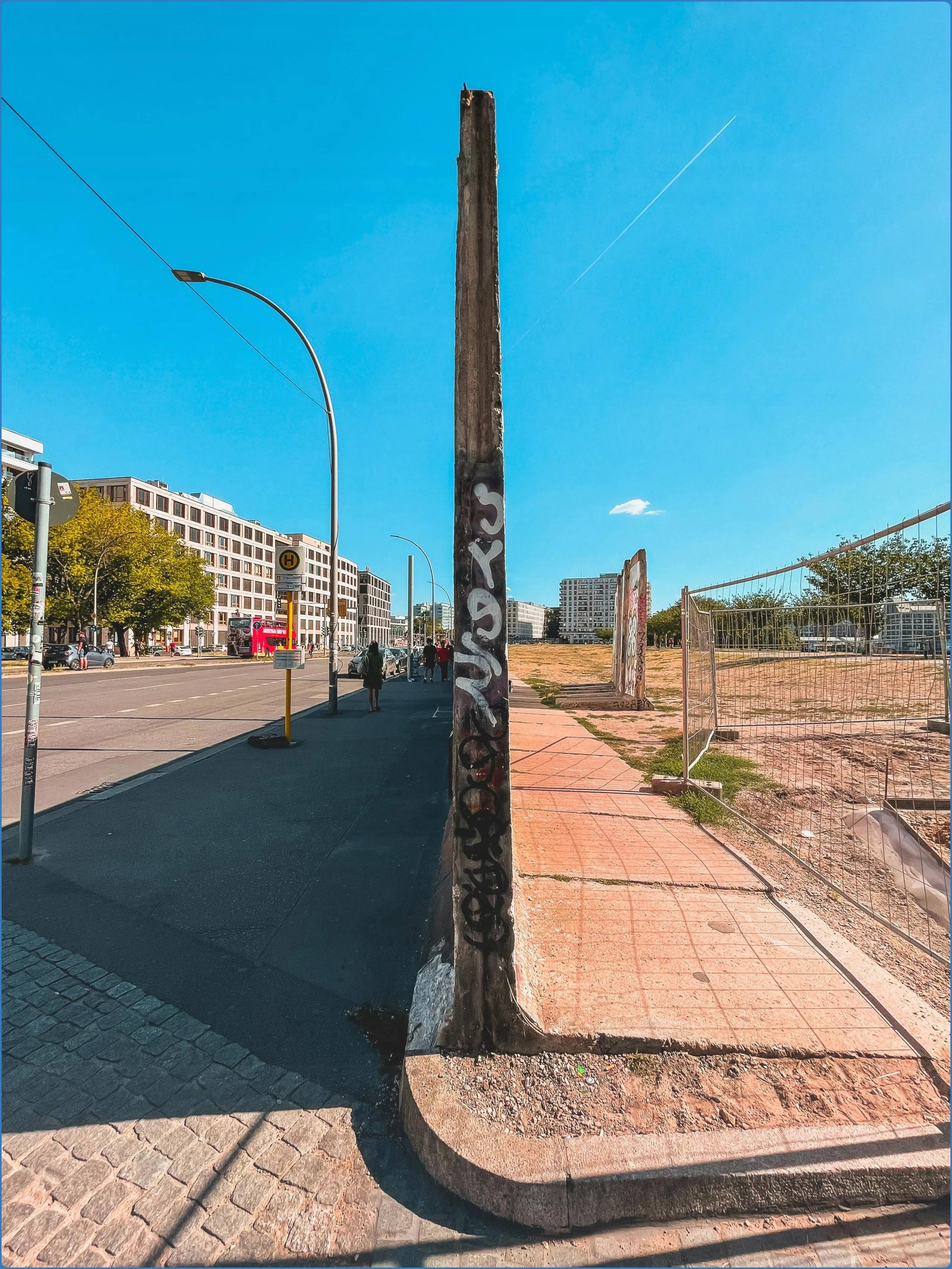 Das Denkmal "Berliner Mauer" erstreckt sich auf verschiedenen Seiten der Straße.