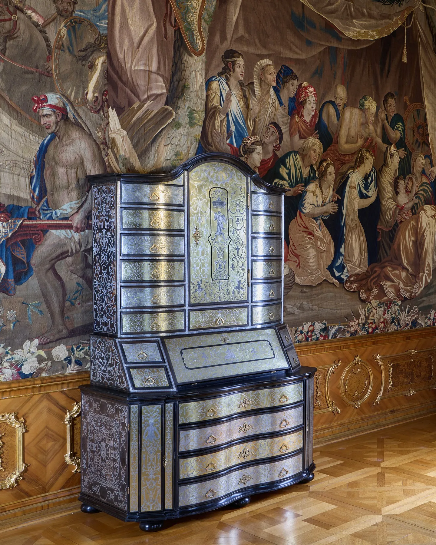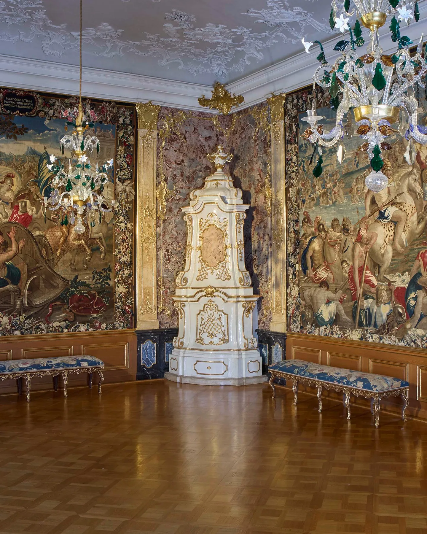 Kein großes Ding, um ein Klugscheißer zu sein, aber sie sind im Fall des Spiegelschranks (die dort untergebrachten schmelzenden Tafelbilder bekommen auch mehr Presse). Sie wurden mit einer Methode geschaffen, die nur wenige in den letzten Jahrzehnten angewendet haben. Und zur Zeit der Nachkriegsrestaurierung des Raums hätten Künstler alte Kopien oder Vorstellungen durchsuchen müssen, um eine Idee zu bekommen, wie man es macht.