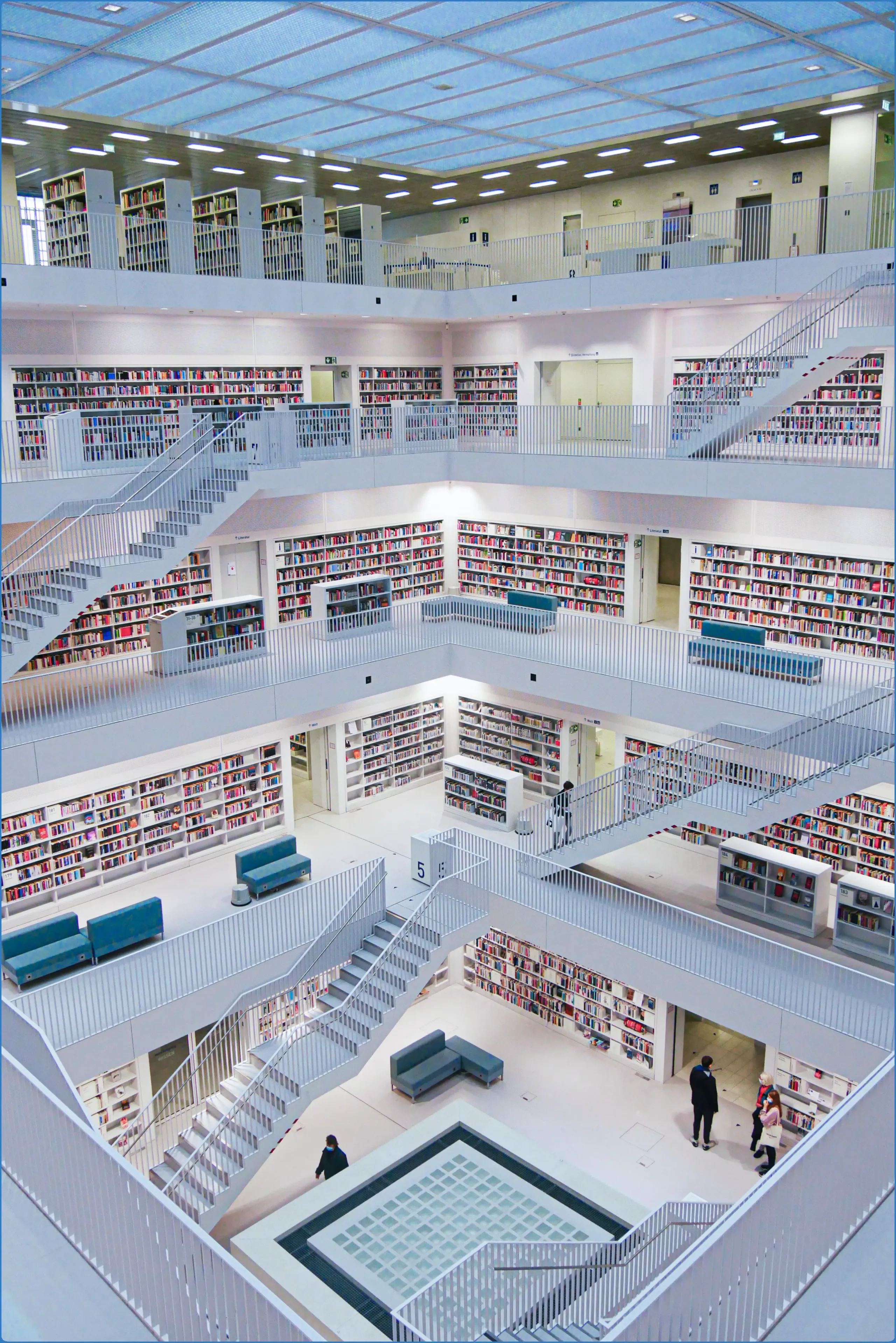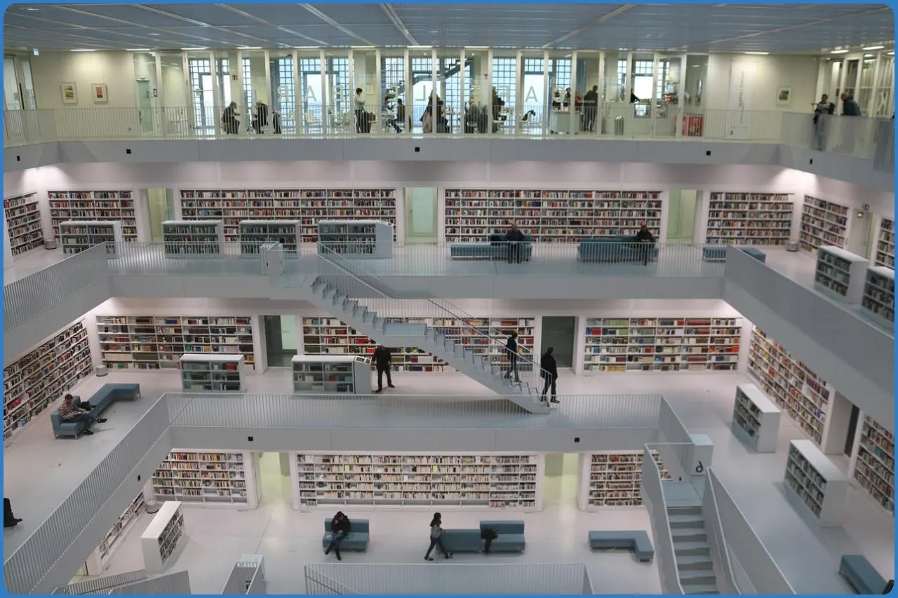 Das Hauptgebäude der Stadtbibliothek Stuttgart besteht aus neun oberirdischen und zwei unterirdischen Geschossen. Das Herzstück des Gebäudes ist ein vierstöckiges Gebäude, das sich in der Mitte des Gebäudes befindet. Die Bibliothek hatte ein eigenes, besonders gestaltetes Werk. Es war das erste Buch mit dem Titel „Die Vielseitigkeit der Stadtbibliothek“. Die Perlen der Architektur oder die Zeugnisse des Wissens sind in der Regel die Bibliotheken selbst. Das gilt auch für den minimalistischen Neubau der Stadtbibliothek Stuttgart. Die Stuttgarter Stadtbibliothek sieht aus wie ein quadratisches Gebäude und ragt rund 40 Meter in die Höhe. Sie sieht aus wie ein monolithischer Kubus aus grauem Beton und Milchglas. Genauso minimalistisch ist auch die Fassade der Bibliothek. Die Bibliothek selbst strahlt eine gewisse Härte aus. Von den Wänden über den Boden bis zur Treppe ist das Innere der Bibliothek ganz in Weiß gehalten.