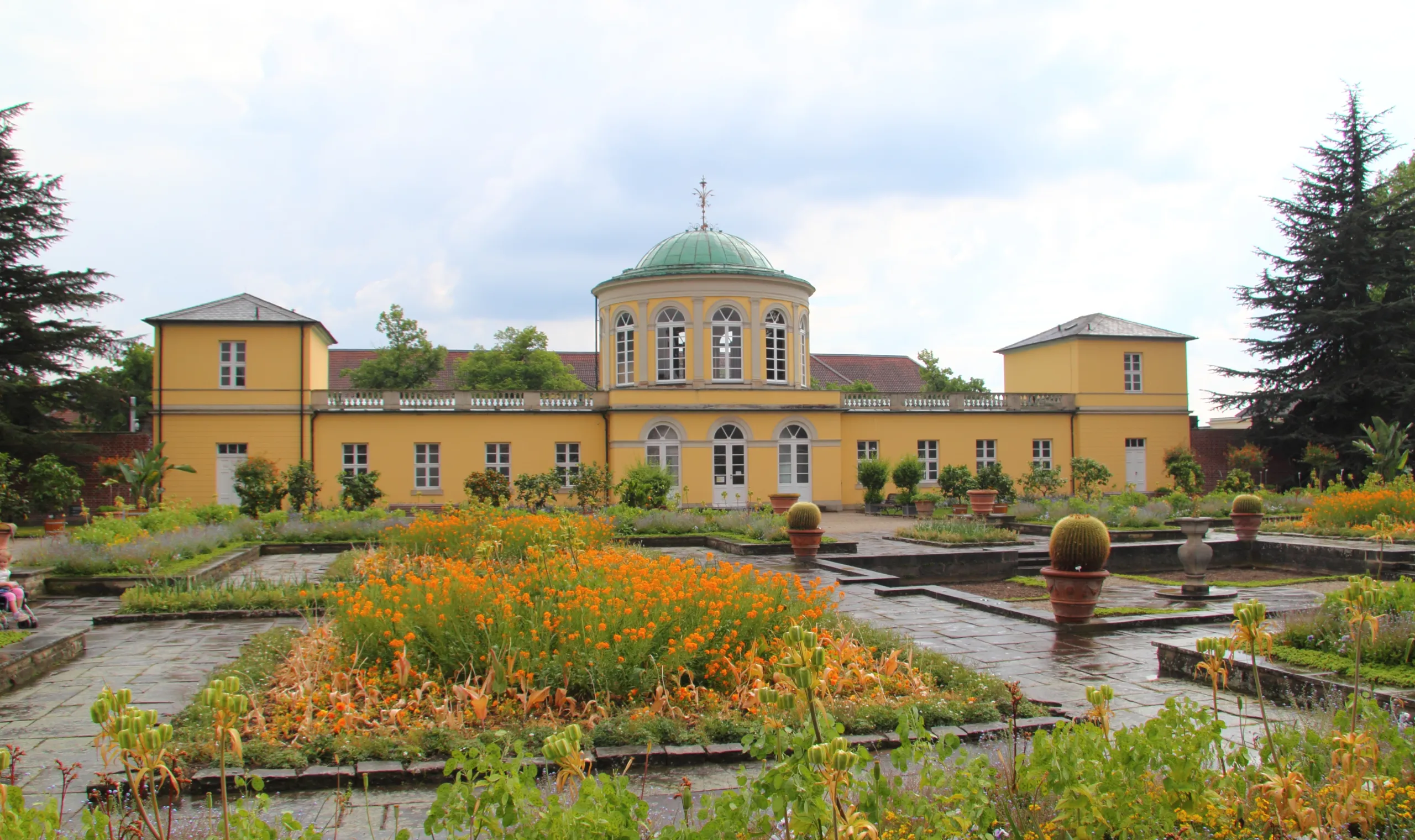 Das Haus des Gartenbesitzers wurde zwischen 1817 und 1820 von Georg Ludwig Friedrich Laves erbaut. Im Jahr 1951 wurde die Gartenbibliothek in diesem Gartenhaus untergebracht. So wurde das Gartenmeisterhaus mit dem Bibliothekspavillon verbunden. Das Palmenhaus wurde von Laves erbaut und 1849 eingeweiht. Fünf Jahre später beherbergte dieses Palmenhaus die größte und wertvollste Palmensammlung in Europa.